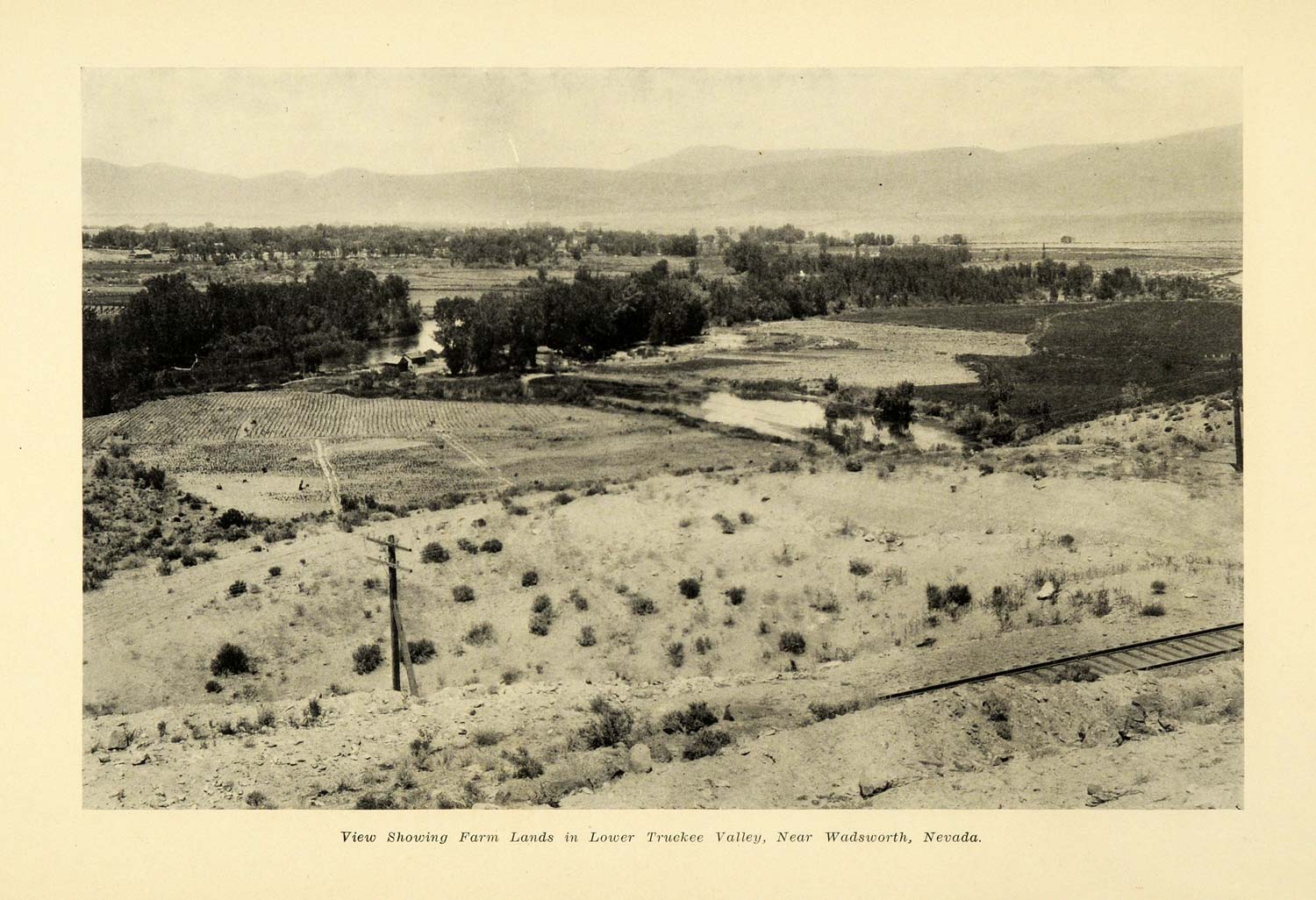 This is an original 1907 halftone print of farmlands in the lower Truckee Valley near Wadsworth, Nevada.