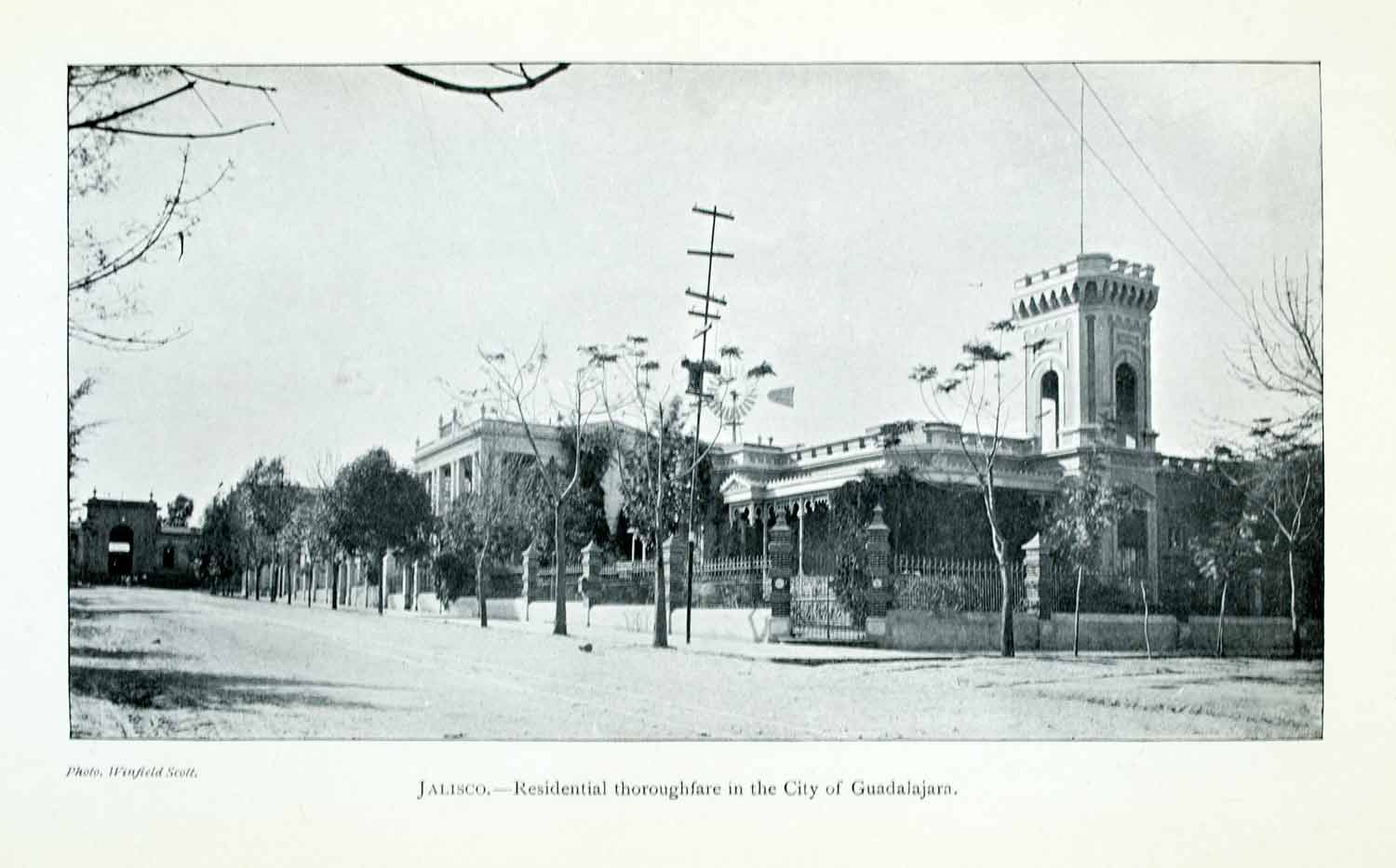 This is an original 1907 black and white halftone print of a scene in the city of Guadalajara in the state of Jalisco, Mexico.