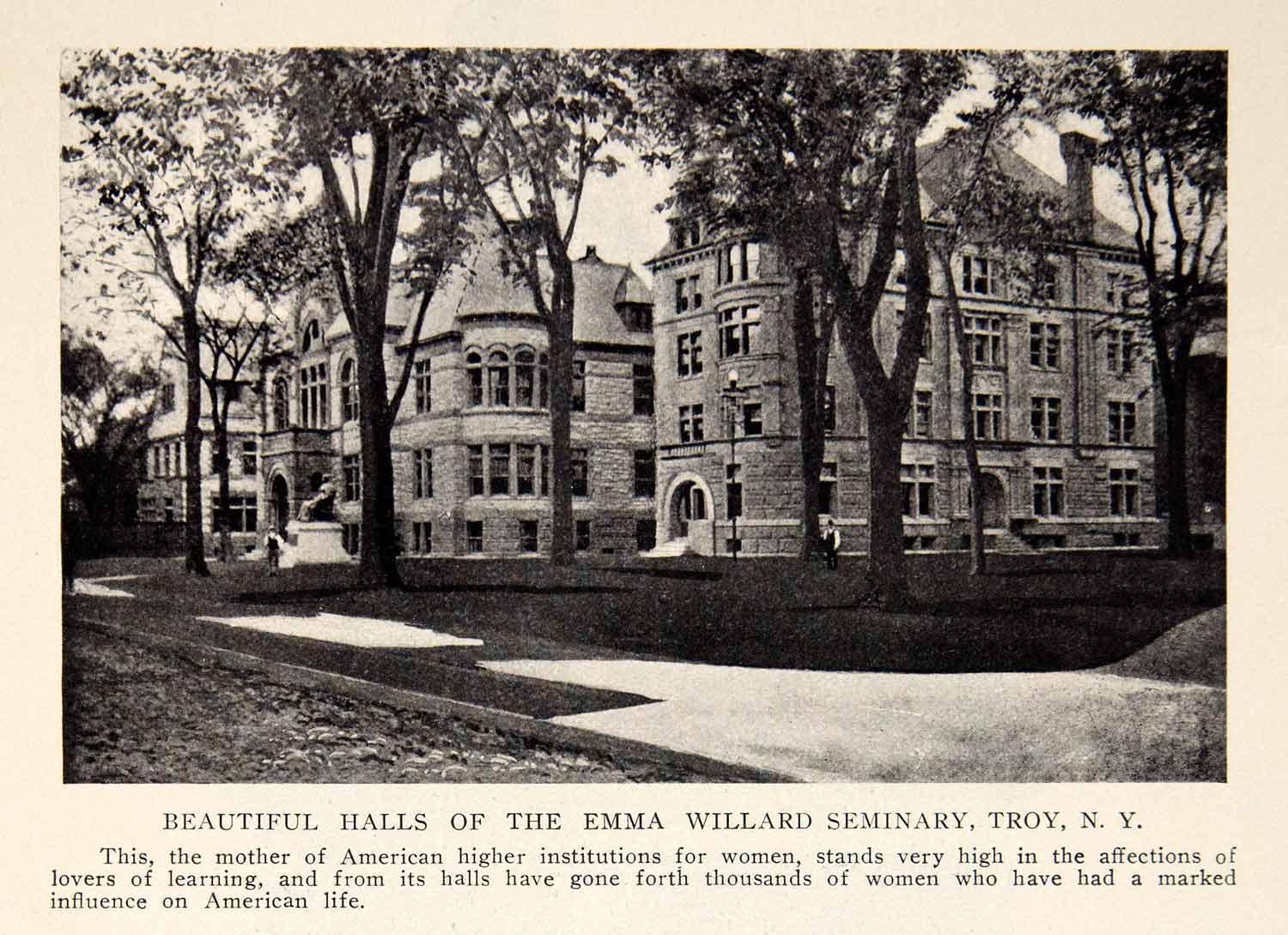 This is an original 1907 black and white halftone print of the "Beautiful Halls of the Emma Willard Seminary in Troy, New York.
