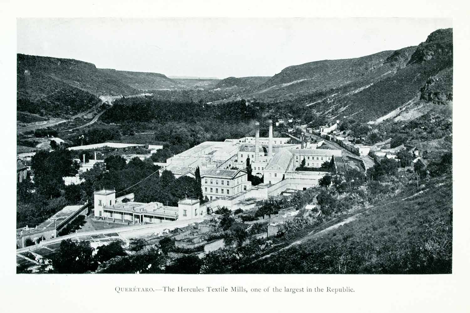 This is an original 1907 black and white halftone print of the Hercules Textile Mills in Queretaro, Mexico.