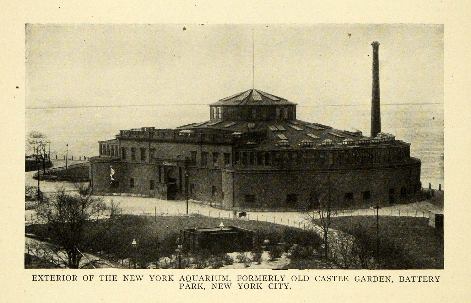 This is an original 1907 halftone print of the exterior of the New York Aquarium. This aquarium is the oldest continually operating aquarium in the United States. Originally, the aquarium opened in Castle Garden in Battery Park, Manhattan in 1896; however, during the mid 1950s, the structure was relocated to Coney Island in Brooklyn.
