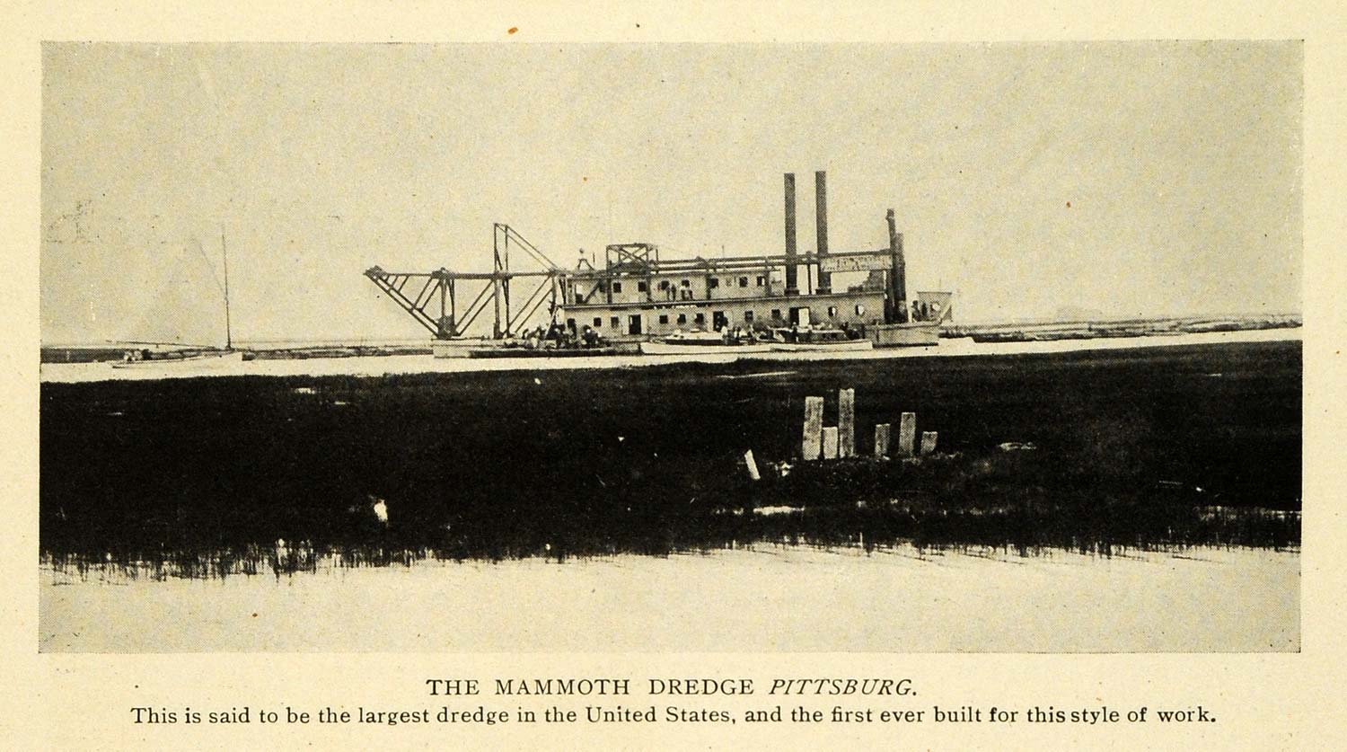 Pittsburg. The caption writes, "This is said to be the largest dredge in the United States, and the first ever built for this style of work."