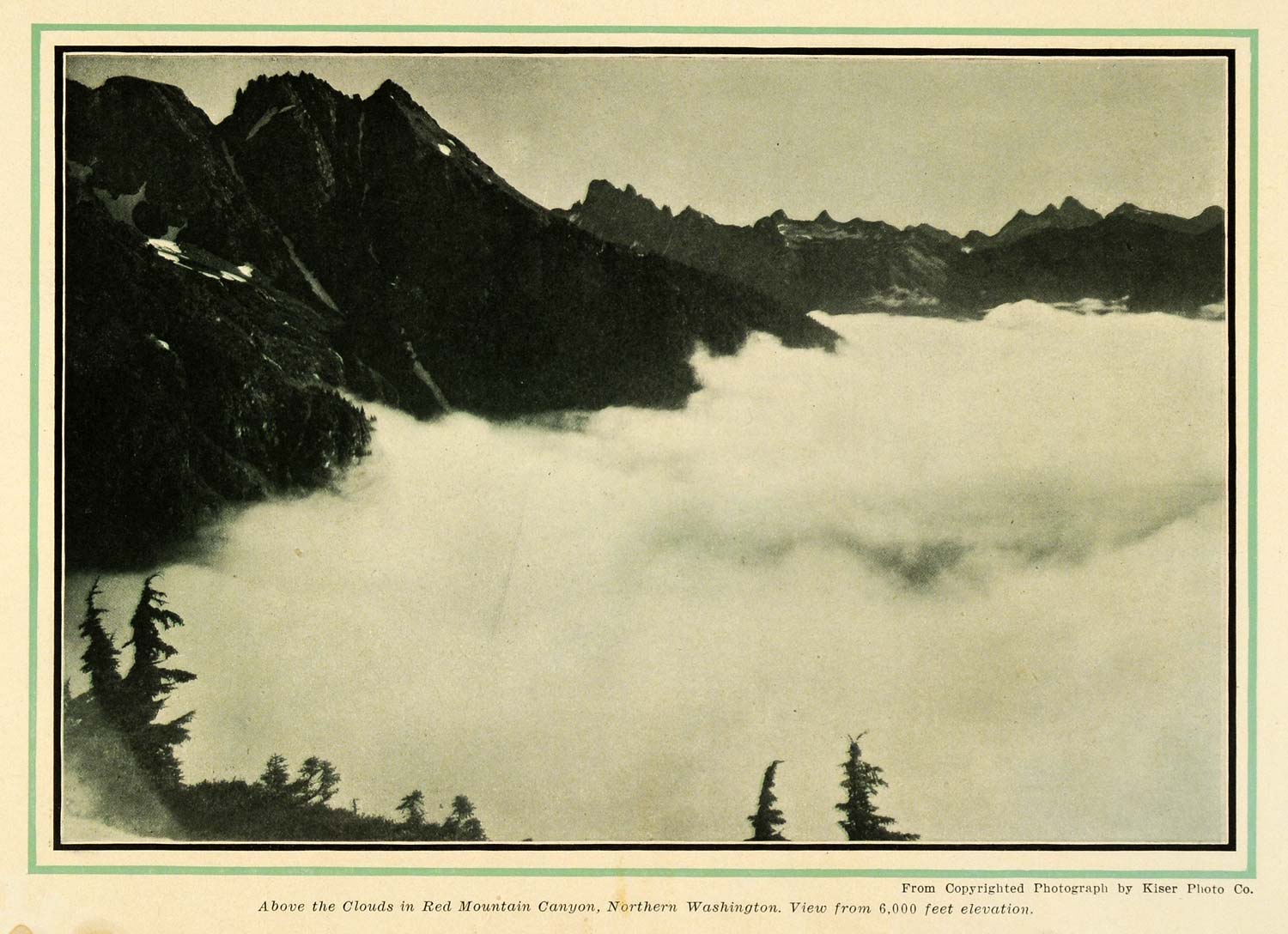 This is an original 1907 color print of the Red Mountain Canyon in Northern Washington. The image was taken from an elevation of 6,000 feet.