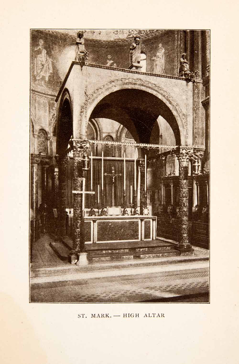 This is an original 1907 black and white halftone print of the High Altar at St. Mark's Basilica in Venice, Italy.