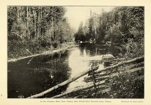 This is an original 1907 halftone print of the Sturgeon River. We are unsure as to where the river is located, but the caption writes, "On the Sturgeon River near waters that would have rejoiced Isaac Walton." Izaak Walton was an English writer known for his book, "The Compleat Angler." Interestingly, Charles Dickens makes mention of Walton in "Tale of Two Cities," as well as Washington Irving's, "The Angler."