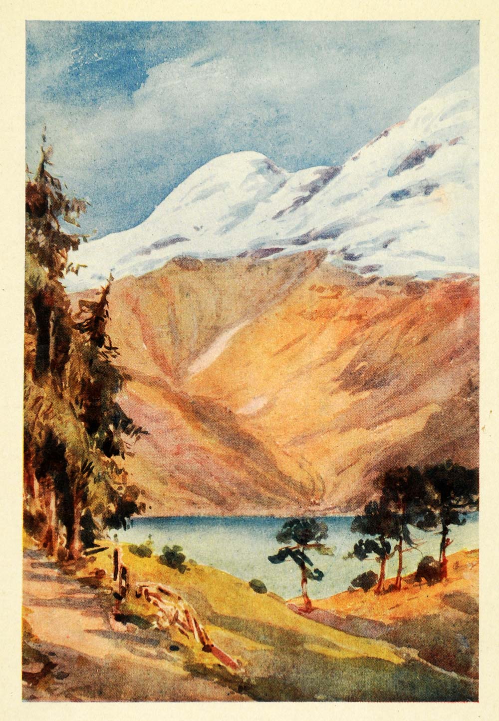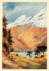 This is an original 1907 color print of the Titlis mountain of the Umer Alps in Switzerland (die Schweiz). The mountain is located between Obwalden and Berne and is known for owning the world's first revolving cable car.