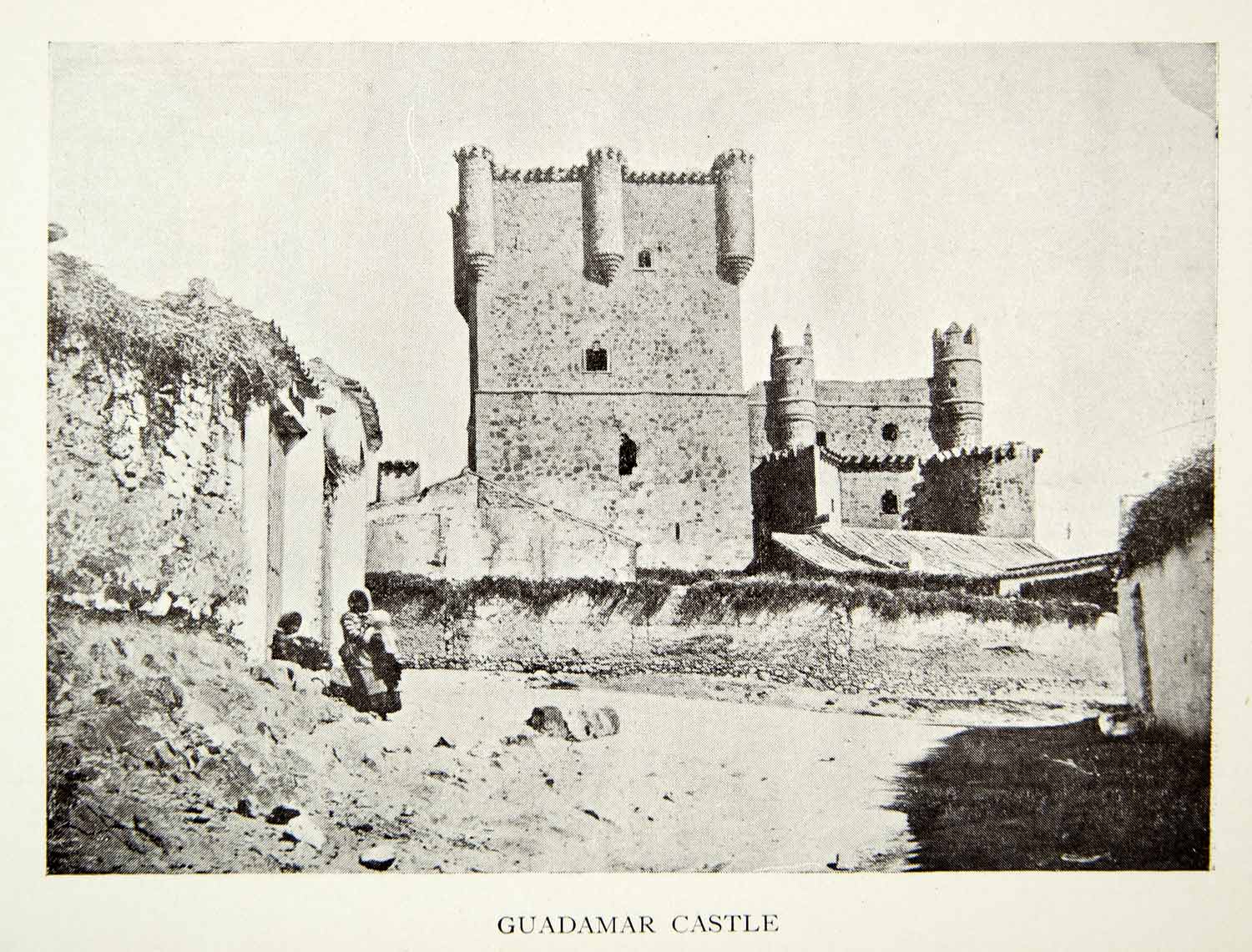 This is an original 1907 black and white halftone print of what we believe to be the Catillo de san Servando in Toldeo, Spain.