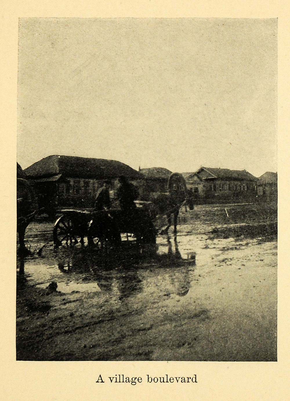 This is an original 1907 halftone print of a village boulevard in Russia during the early 20th century. Please note the dimensions of this image.