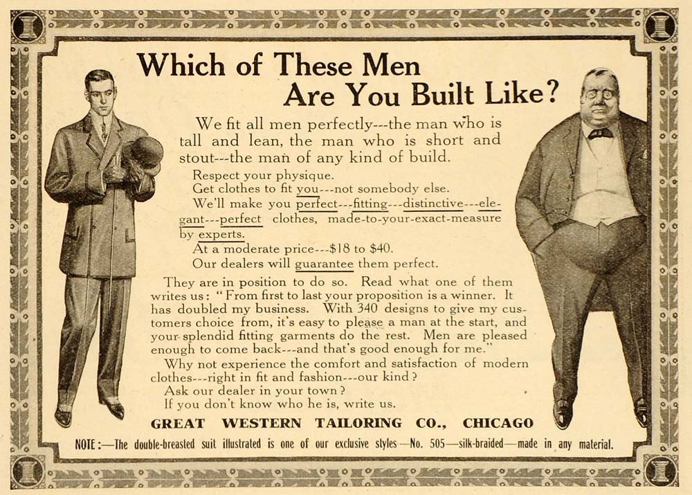 This is an original 1907 black and white print ad for the Great Western Tailoring Co.