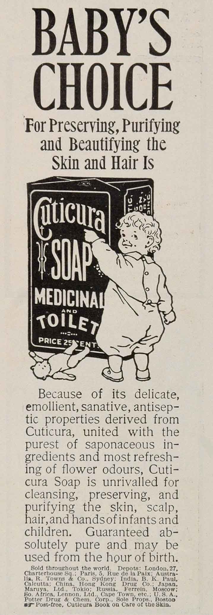 This is an original 1907 black and white print ad for Cuticura Soap and Ointment.