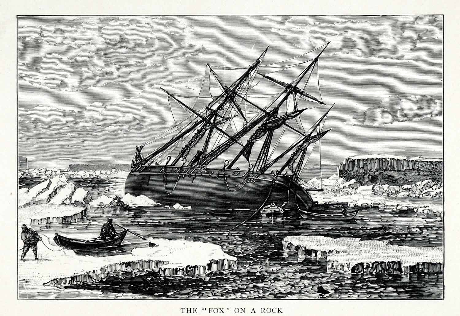 1907 Wood Engraving Arctic Expedtion Icebergs Fox Sinking Steam Yacht Ice XGV8
