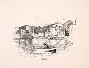 1907 Wood Engraving Ernest Peixotto Rapallo Genoa Liguria Boat Boat XGIA5