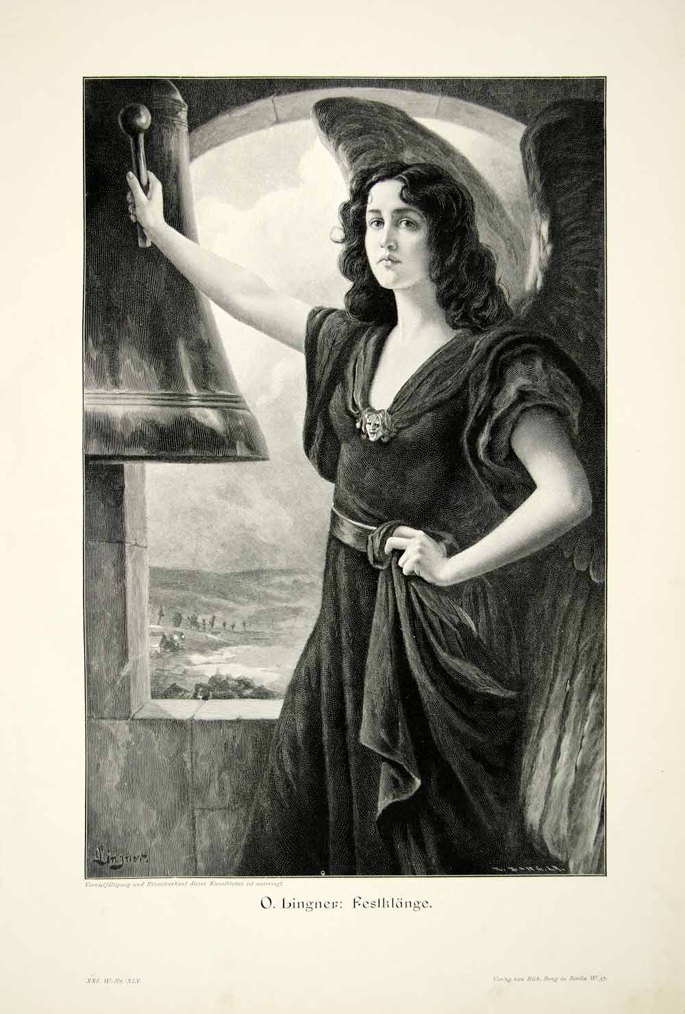 Festklänge (loosely translated to "Determined Sounds" or "Fixed Sounds"). An angel rings a bell high up in a bell tower, with a laughing face as the clasp of her cape.