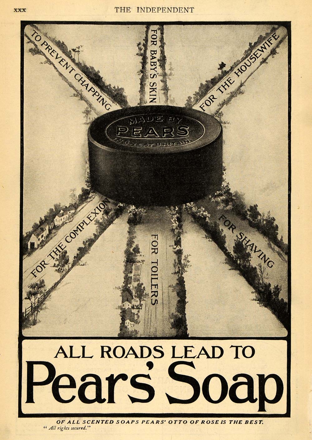 In 1910 A. & F. Pears Ltd. moved to Port Sunlight, England after becoming part of Lever Brothers. Today Hindustan Lever, a company Unilever owns over half of, produces Pears soap.
