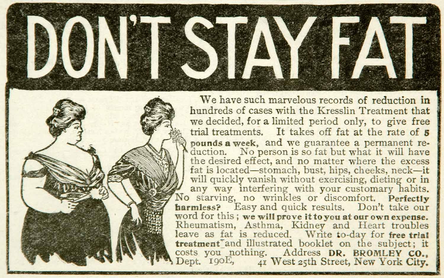 Keywords specific to this image: Vintage Advertising, Health, Beauty, Fat, Obesity, Diet