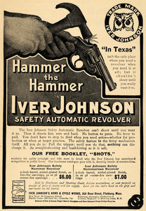 1908 Ad Iver Johsnon Auto Revolver Hammer the Hammer - ORIGINAL ADVERTISING TW1