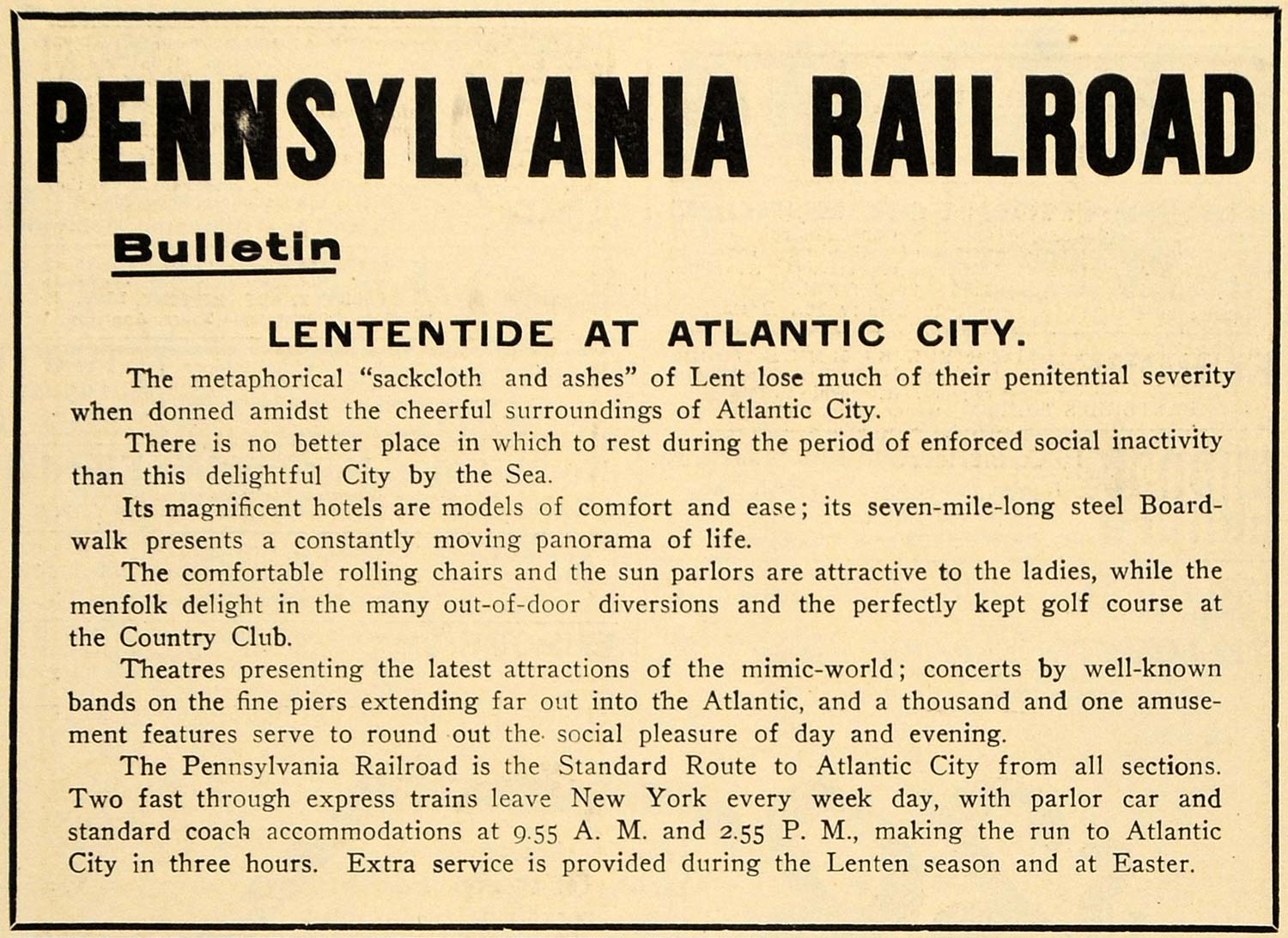 This is an original 1908 black and white print ad for the Pennsylvania Railroad.