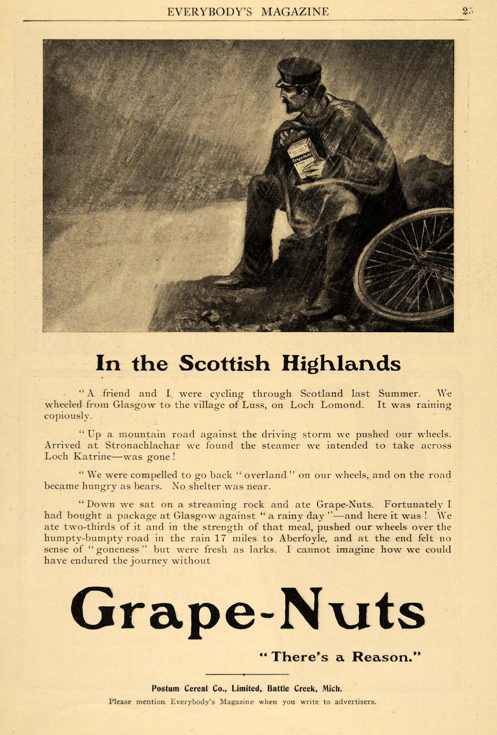 1908 Ad Postum Cereal Co. Grape Nuts Scottish Highlands - ORIGINAL EM2