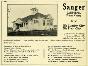 1908 Ad Sanger California Fresno County Real Estate - ORIGINAL ADVERTISING OWE1