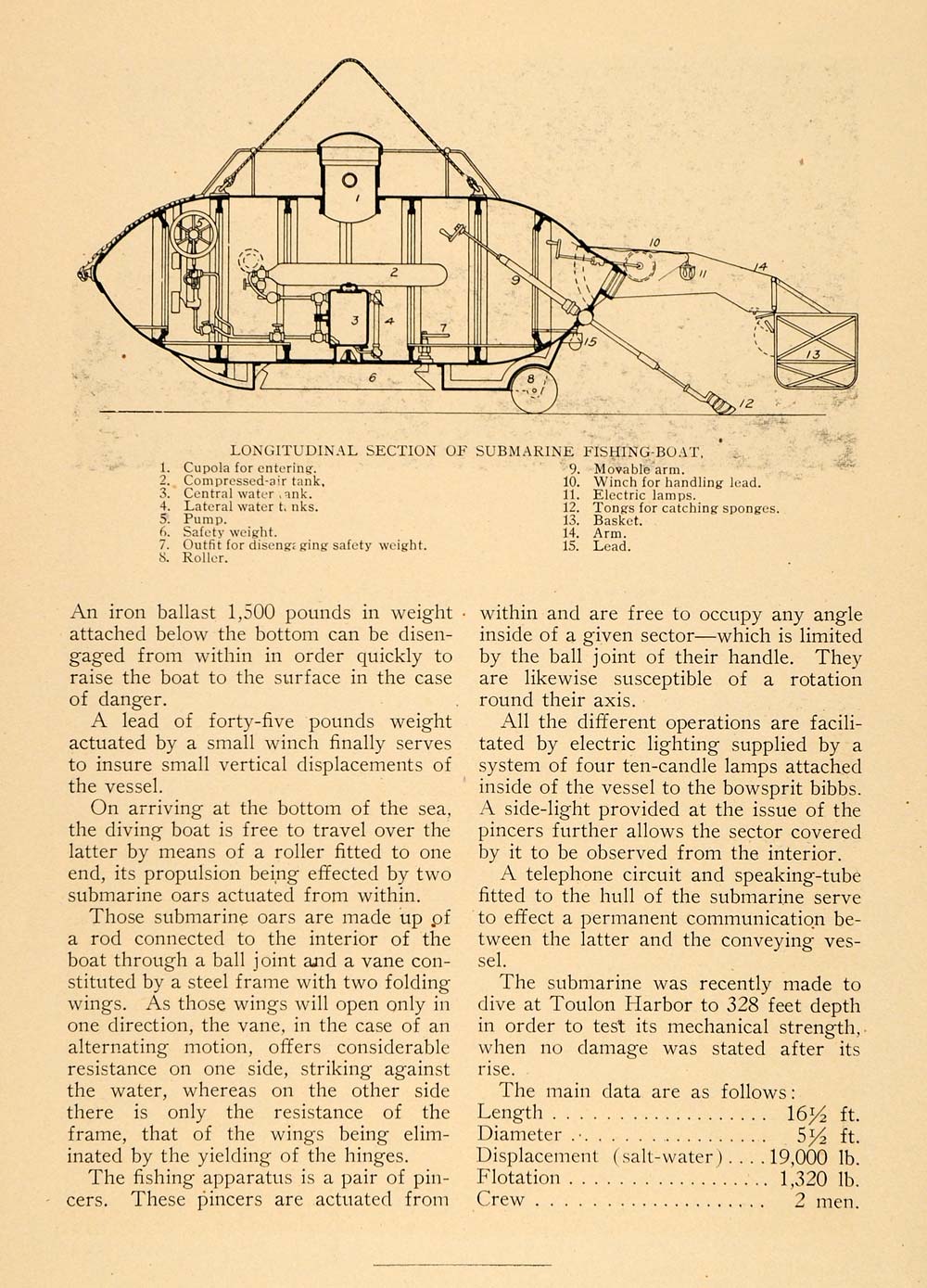 Keywords specific to this image: Deep Sea Fishing, Carthage, Abbe Raoul, Engineering, Tunisian Sponge Fishing Industry, Measurements, Specifications, Toulon Harbor