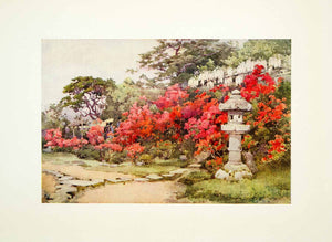 Period Paper is pleased to present a beautiful collection of color prints from 1908. The collection depicts numerous images of beautiful visions of flowers, nature and classic Japanese scenes. Depicted are azaleas, chrysanthemums, plum blossoms, lotus, and wistaria as well as other Japanese garden scenes.