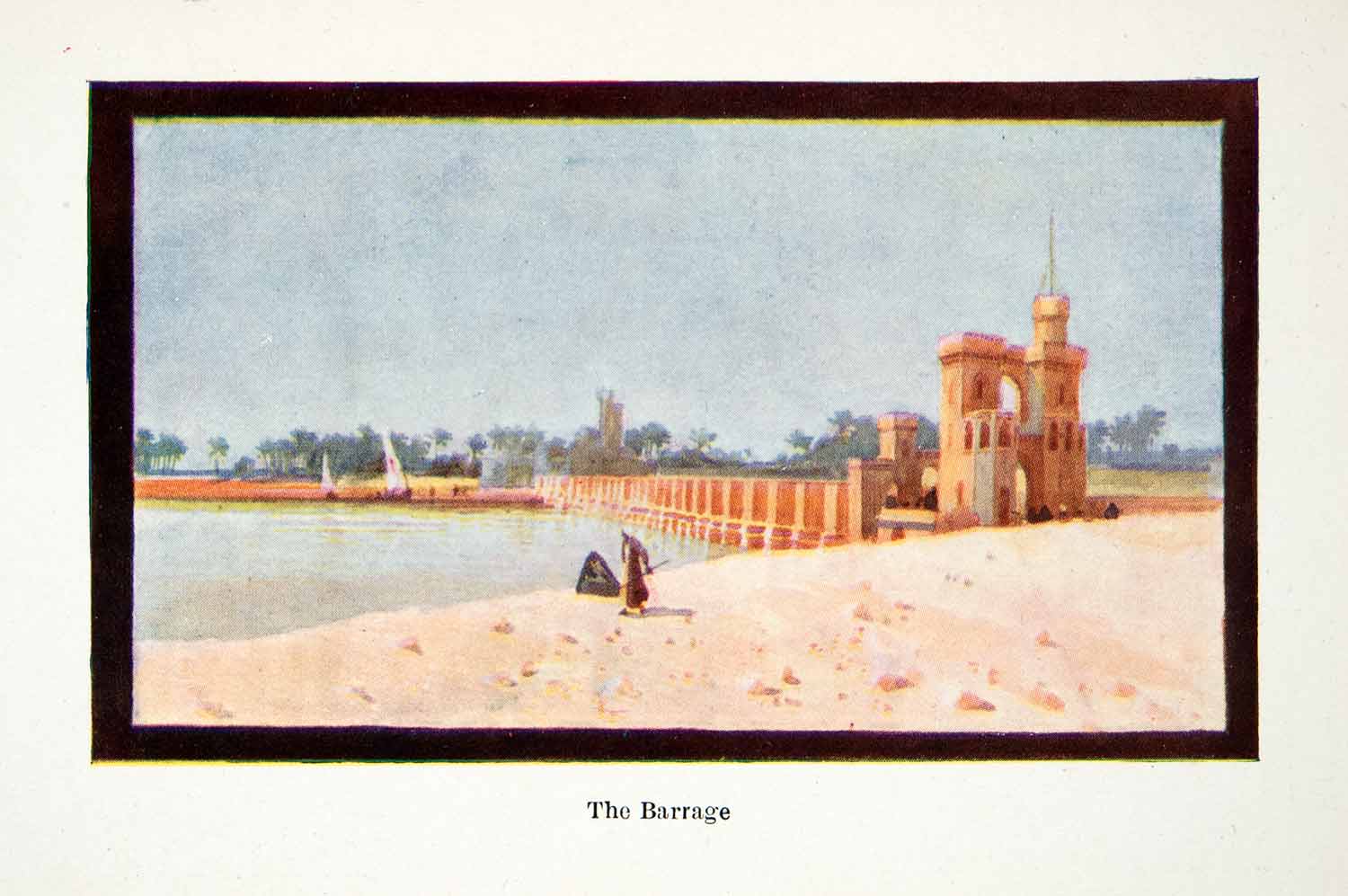 This is an original 1908 color print of the Barrage, which is a type of dam, located in Egypt.