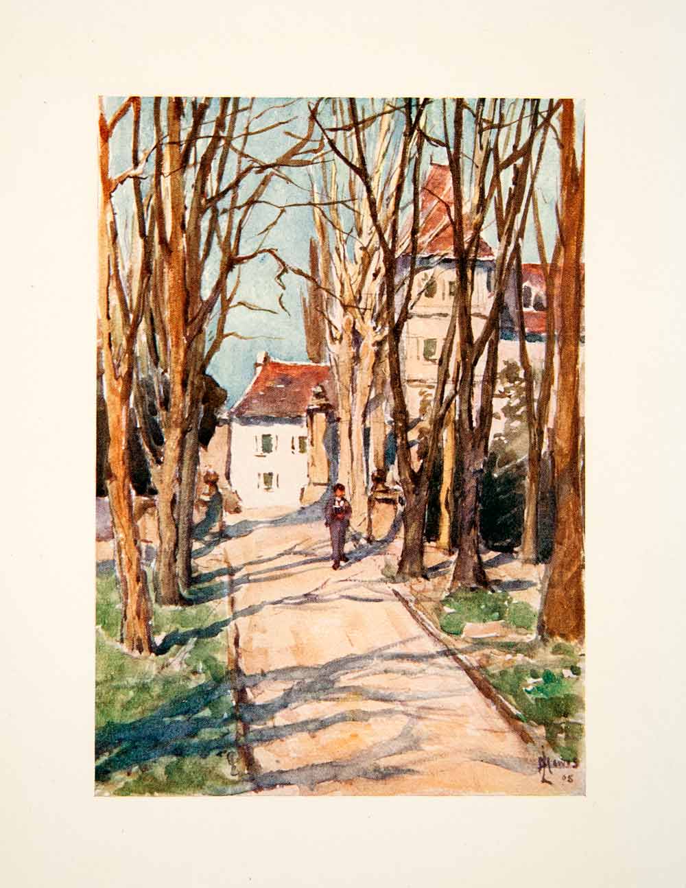 This is an original 1908 color print of "The Chateau de Prangins," in Switzerland.
