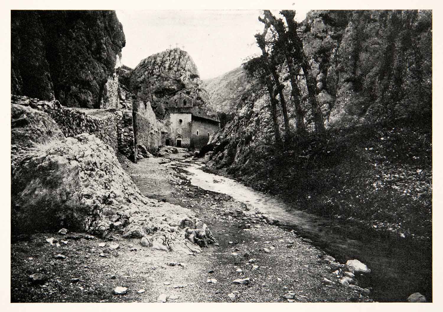 This is an original 1908 black and white halftone print of the old roadway to Assergi, Italy.