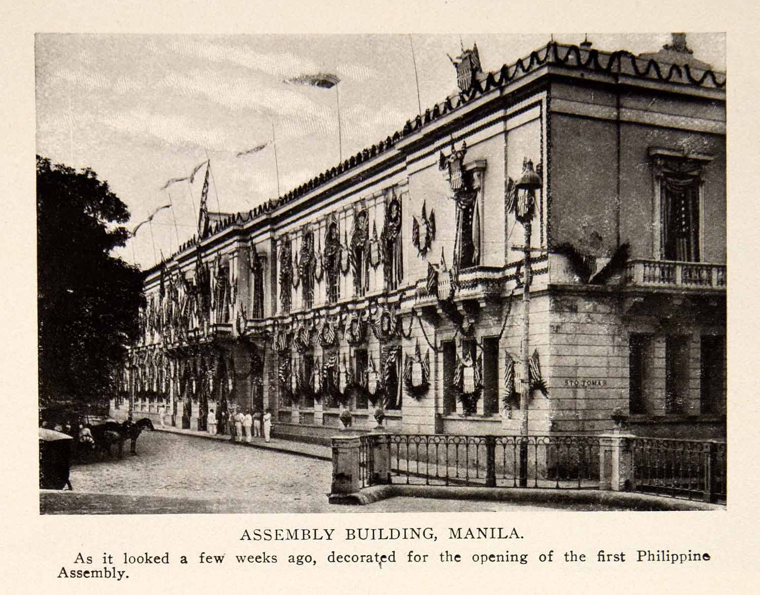 This is an original 1908 black and white halftone print of the "Assembly Building, Manila."