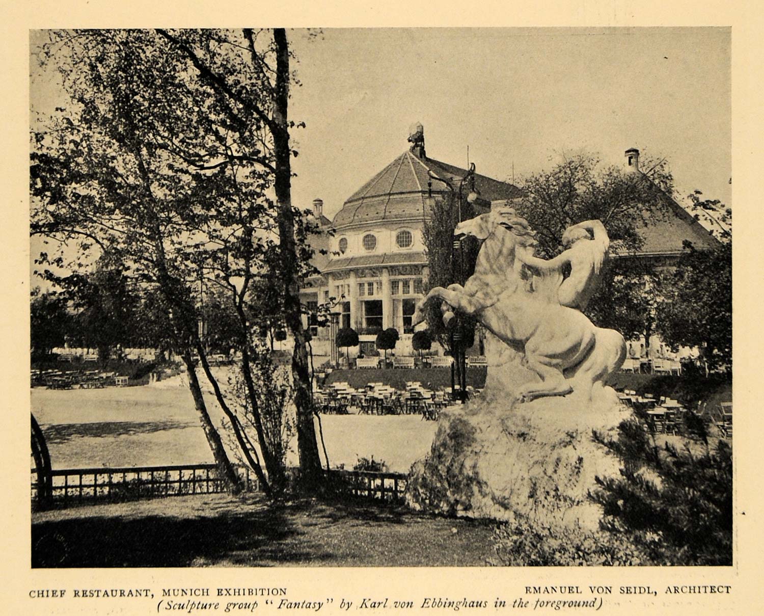 This is an original 1908 halftone print of the Chief Restaurant: Munich Exhibition by Emanuel Von Seidl.