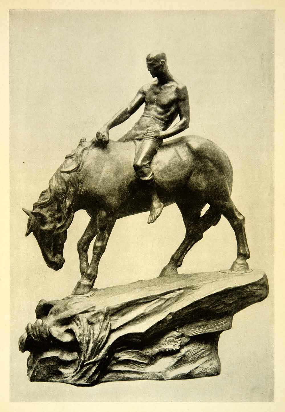 This is an original 1908 two-color halftone print of a bronze sculpture by Constantin Meunier (1831-1905).