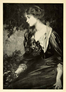 This is an original 1908 two-color halftone print of a painting by James Jebusa "J.J." Shannon (1862-1923) that portrayed Lady Victoria Marjorie Harriet Manners (1883-1946). She married Charles Paget, 6th Marquess of Anglesey on August 3, 1912.