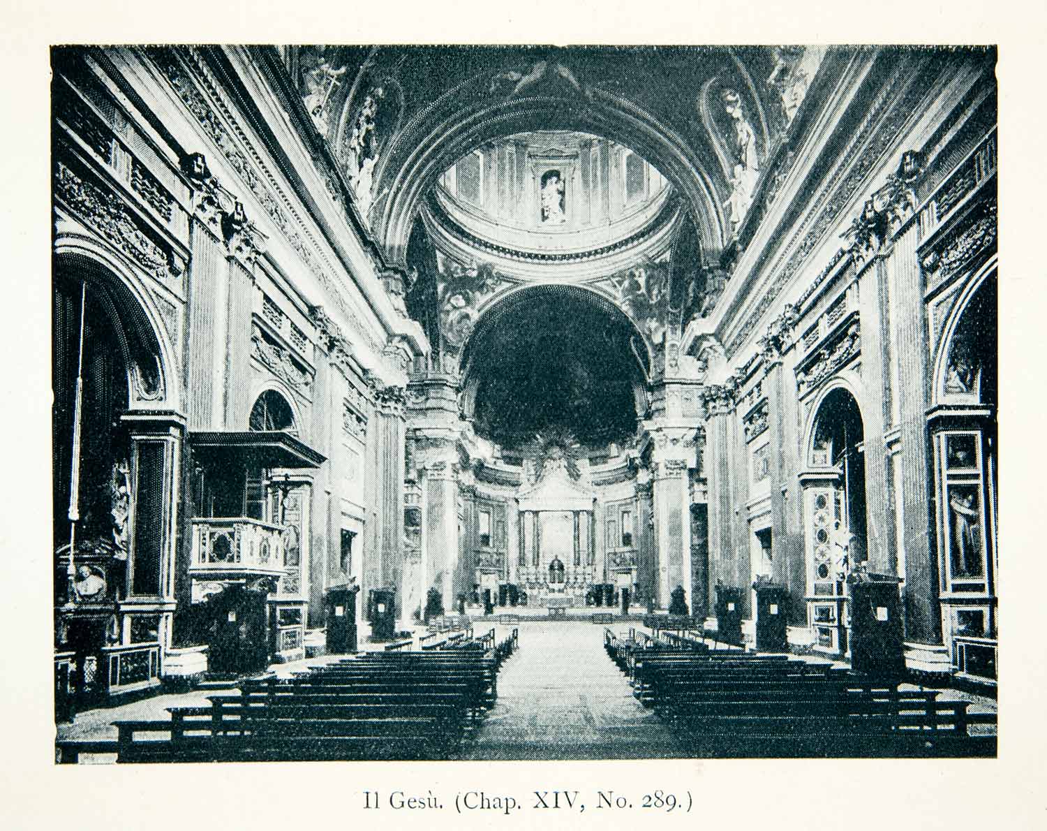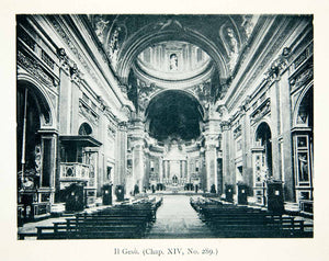 This is an original 1908 duotone halftone print of the interior of the Church of the Gesù which is located in Rome, Italy. It is the mother church of the Roman Catholic religious order known as the Jesuits or the Society of Jesus.