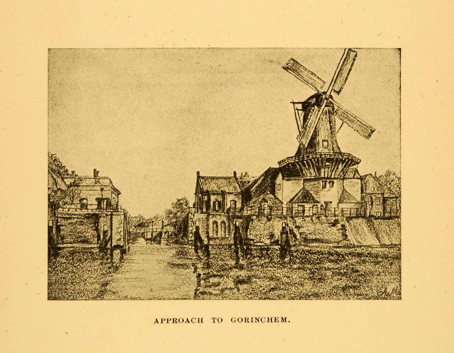 This is an original 1908 halftone print of the cityscape of Gorinchem.