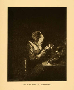 This is an original 1908 halftone print of a painting titled "The Lost Thread."