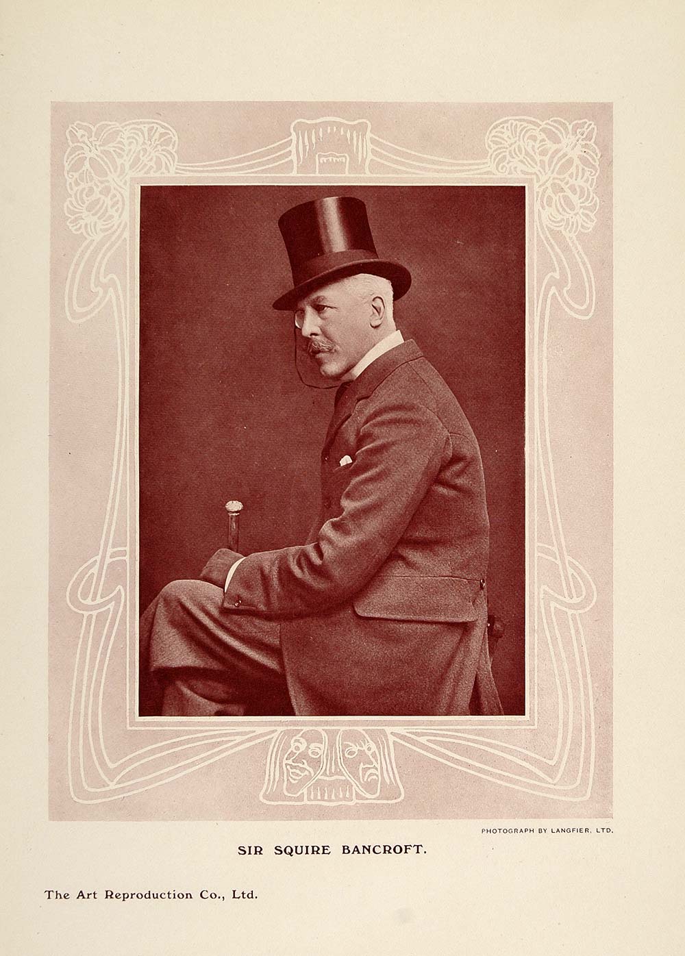 This is an original 1908 print portrait of Sir Squire Bancroft (1841 - 1926), English actor. Photograph by Langfier, Ltd. The Art Reproduction Co., Ltd. (Note the Art Nouveau border with the masks of comedy and tragedy.)