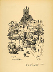 This is an original 1908 halftone print of Quimperle by W. H. Charlton. This is a very expressive sketch. You can see the individual lines from the pencil marks the artist made.