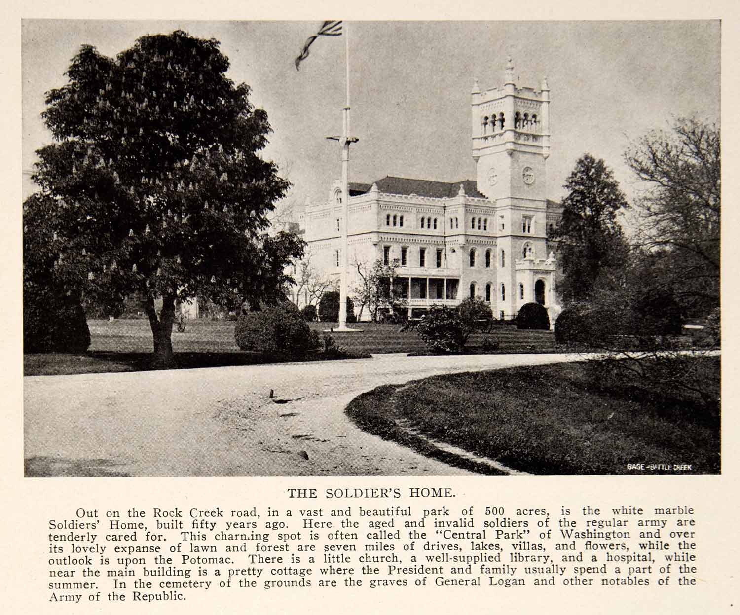 This is an original 1908 black and white halftone print of "The Soldier's Home," in Washington, D. C.