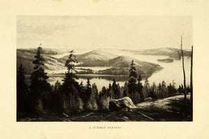 This is an original 1908 halftone print of a sunset over a water body in Finland (Suomi).