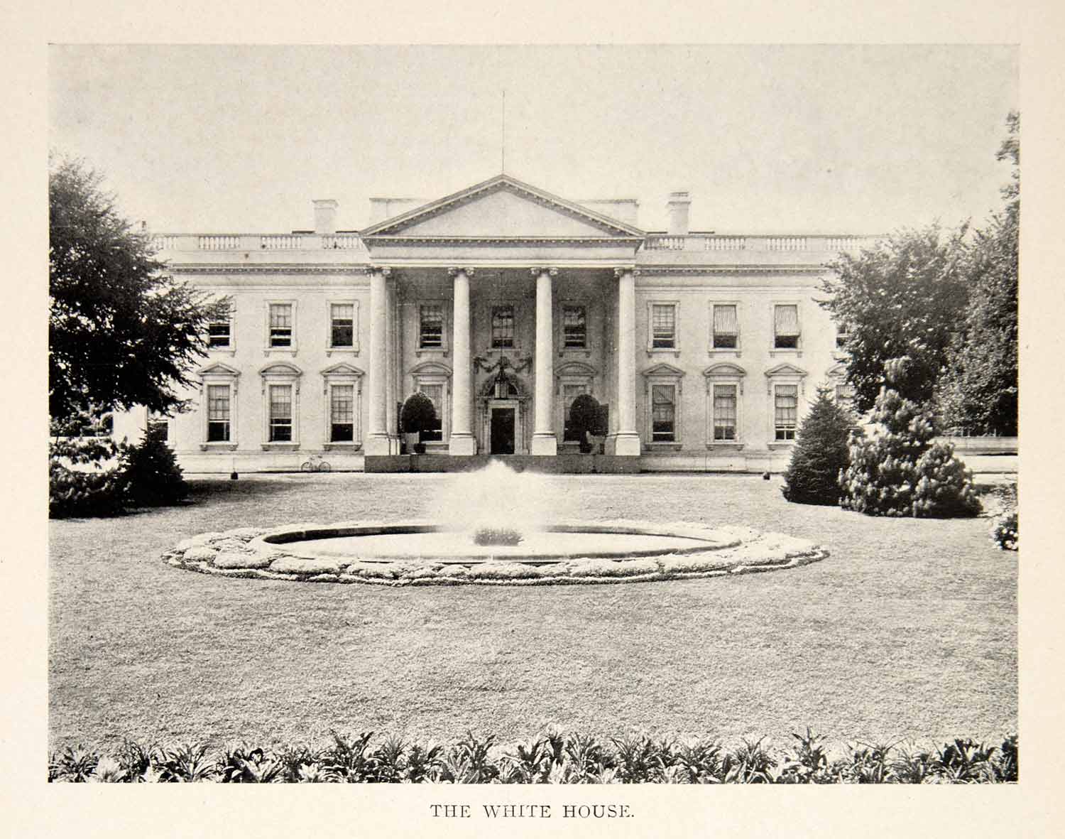 This is an original 1908 black and white halftone print of "The White House," in Washington D. C., on Pennsylvania Avenue.