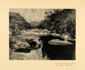 This is an original 1908 halftone print for A Transvaal River. This is a beautiful piece that shows the skill of the artist. The reflection in the water is extremely accurate and realistic.