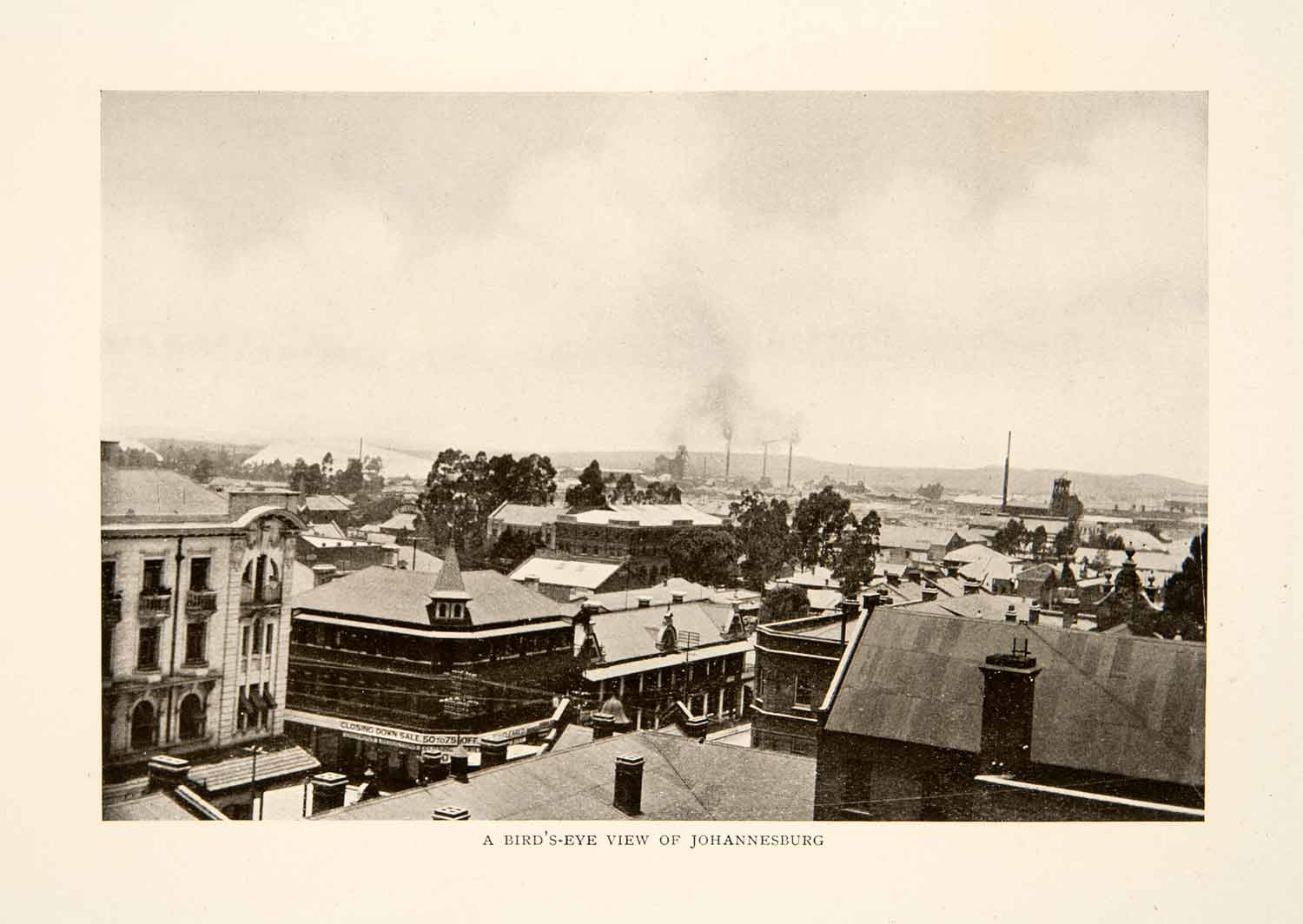 This is an original 1908 black and white halftone print of "A Bird's-eye View of Johannesburg."