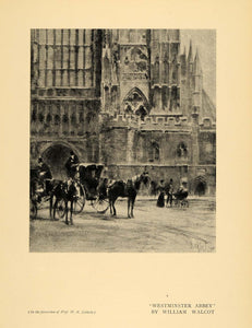 This is an original 1908 halftone print of Westminster Abbey by William Walcot. Walcot was a British architect, graphic artist, and etcher.