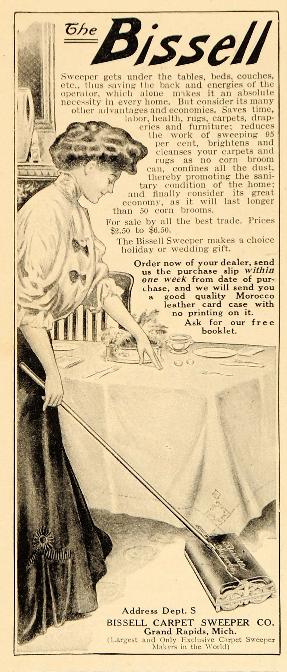1908 Vintage Ad Bissell Carpet Sweeper Cleaning House - ORIGINAL ADVERTISING