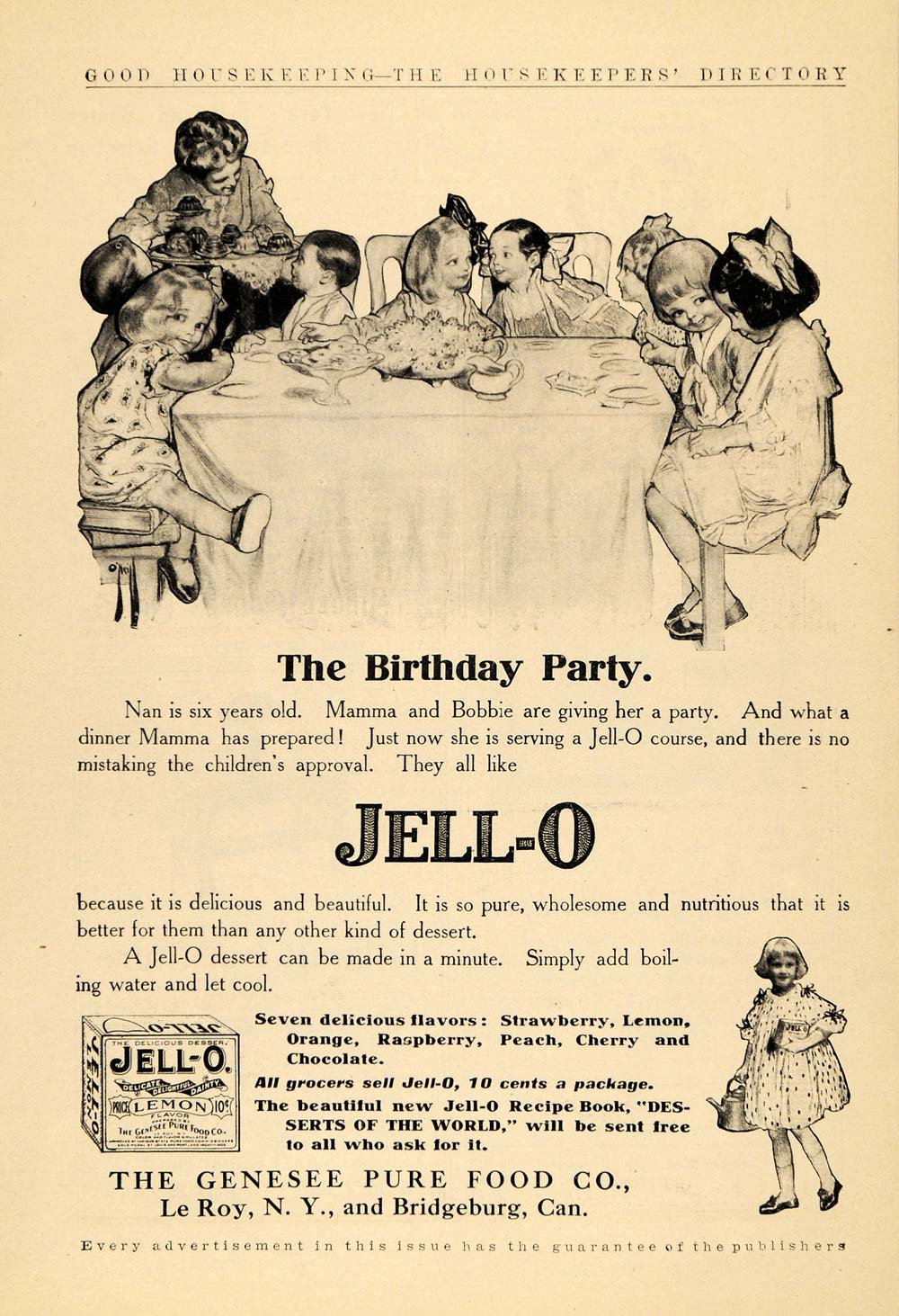 1909 Ad Genesee Pure Food Jell-O Child Birthday Party - ORIGINAL ADVERTISING GH2