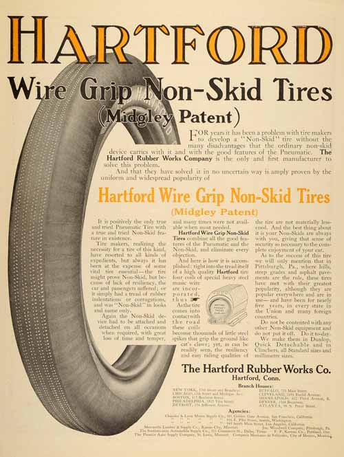 Keywords specific to this image: Antique Automobile Parts, Car Enthusiasts, Car Features, Midgley Patent, Hartford Rubber Works Company Vintage Advertising