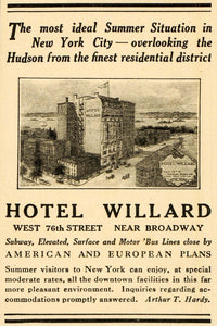 This is an original 1909 black and white print ad for the Hotel Willard by Arthur T. Hardy located on West 76th Street, near Broadway.