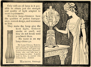 This is an original 1909 black and white print ad for Macbeth Lamp Chimney.