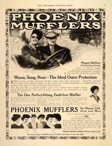 This is an original 1909 black and white print ad for Phoenix Mufflers from the Phoenix Knitting Works.