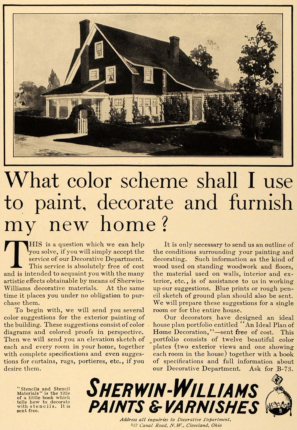This is an original 1909 black and white print ad for Sherwin Williams Paint from Sherwin-Williams Paints & Varnishes located in Cleveland, Ohio.